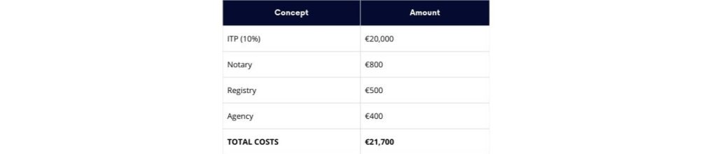 COST SUMMARY TABLE - Example €200,000 (Resale, Valencian Community)