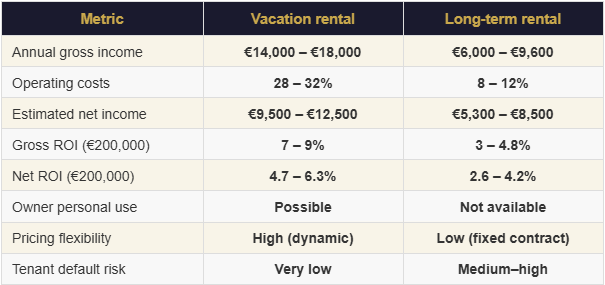 BLOCK 3 · Vacation Rental vs Long-Term Rental — Comparison